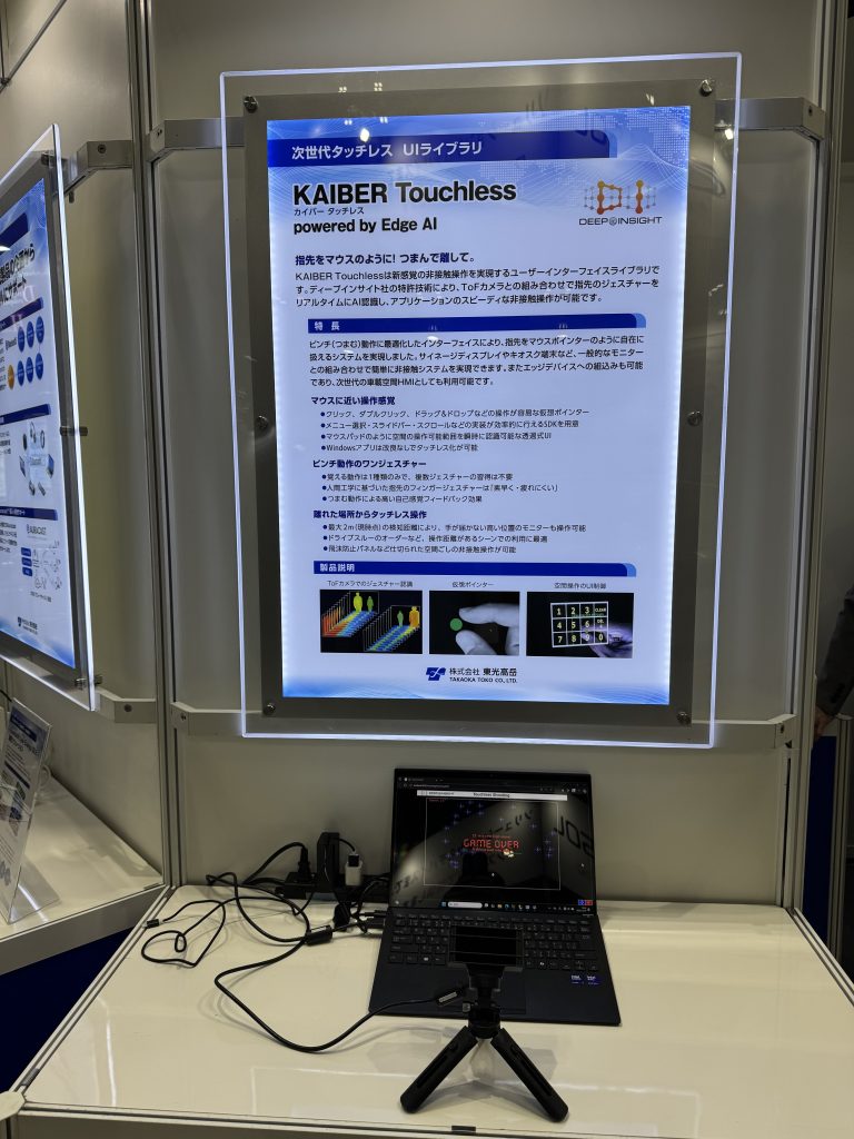 ディープインサイト株式会社(本社:東京都品川区、代表取締役CEO:久保田良則)は、2025年11月19日—21日(パシフィコ横浜)で開催されたEdge Tech+ 2025展にて、パートナーである株式会社東光高岳のブースにて非接触ユーザーインターフェイス「KAIBER Touchless」ライブラリのWindows環境での操作性を強化した新機能のデモを実施致しました。